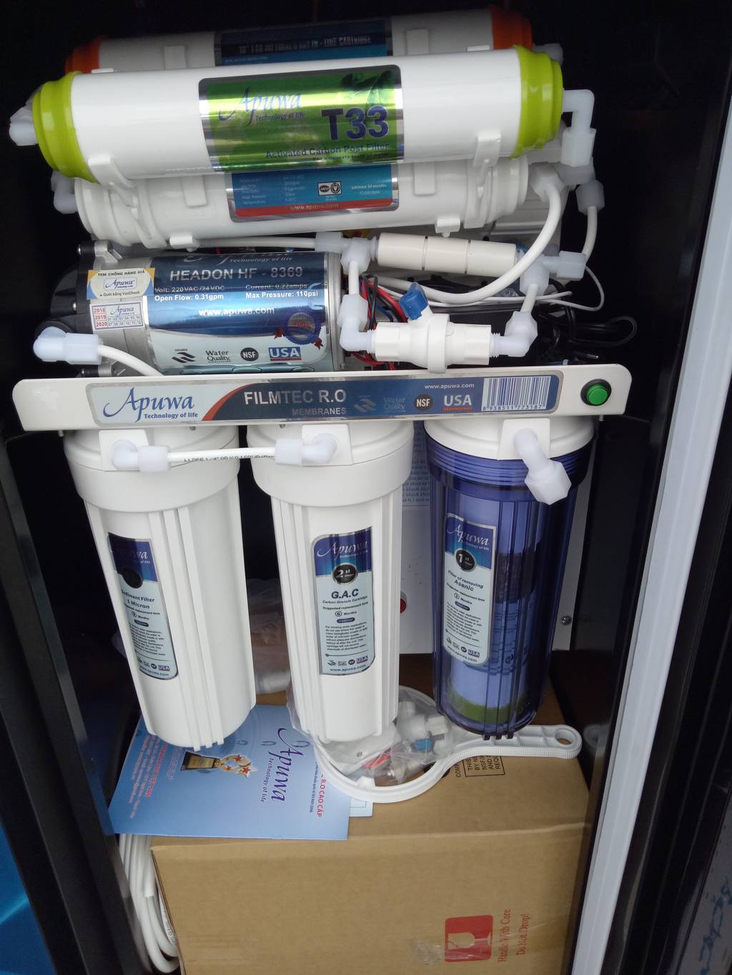 - Lõi lọc APUWA số 5 : Màng lọc RO nhập khẩu nguyên chiếc từ Mỹ.
