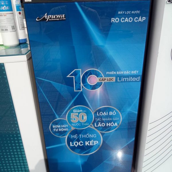 Máy lọc nước cao cấp Apuwa 10 cấp lọc được sản xuất dựa trên dây chuyền sản xuất hiện đại của Hoa Kỳ với nhiều tính năng thông minh và nổi bật, đặc biệt sản phẩm có chức năng xử lý nước hiệu quả an toàn nhất hiện nay. Tuy nhiên có mức giá khá phù hợp với múc tiêu dùng trong nước nên được đông đảo người tiêu dùng lựa chọn là sản phẩm ưu việt cho gia đình.