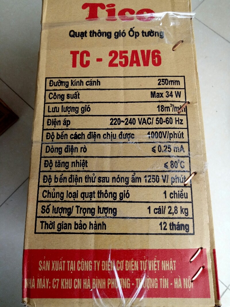 Thông số quạt Tico